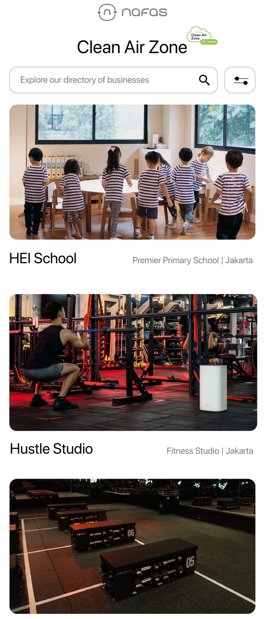 Semua bisnis yang menjadi Clean Air Zone akan ditampilkan di aplikasi Nafas, memudahkan pengguna untuk menemukan bisnis anda.